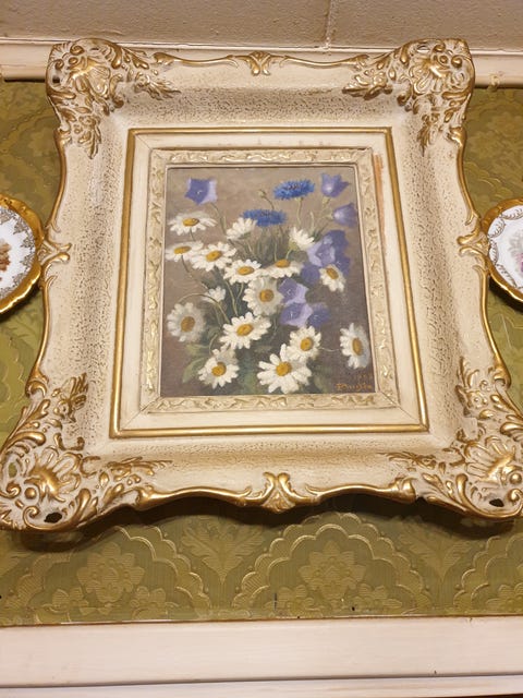 Kaunis kukkamaalaus koristeellisilla kehyksillä