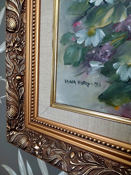 Öljyvärimaalaus kukkakimppu kehyksillä