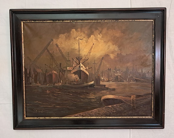Upea suuri öljyvärimaalaus – "Sataman syke"