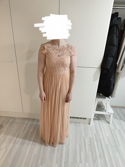 Persikan värinen juhlamekko