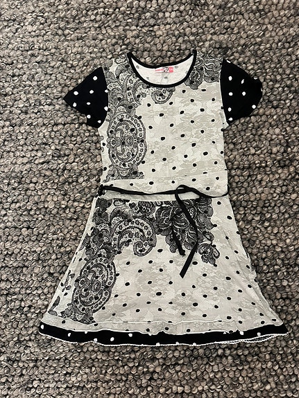 Papu mekko pellavaa, mustavalkoinen, koko 98/104