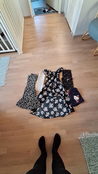4 mekkoa (KappAhl, my wear, peuhu) + valkoiset sukkahousut