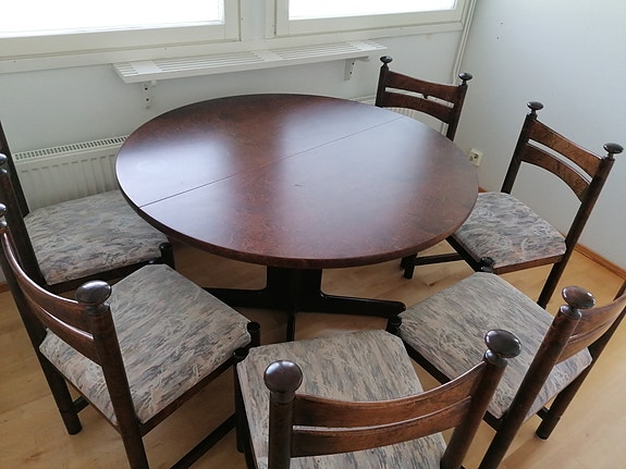 Pyöreä ruokapöytä ja 6 tuolia