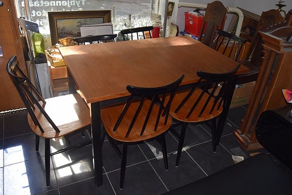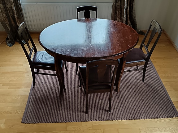 Ruokapöytä ja 5 tuolia, jugend kalusto