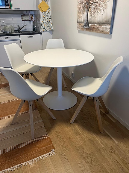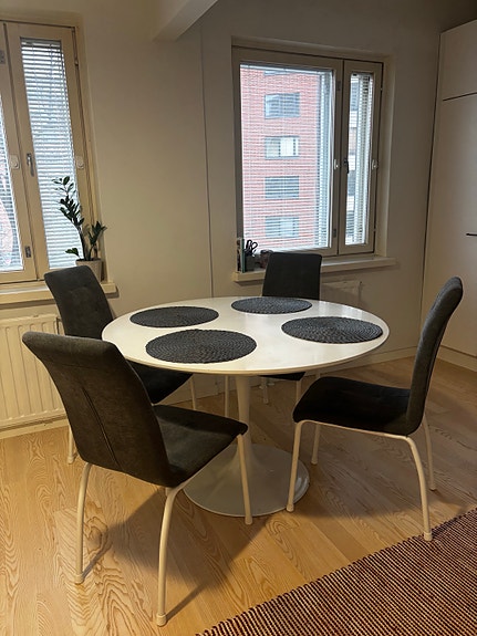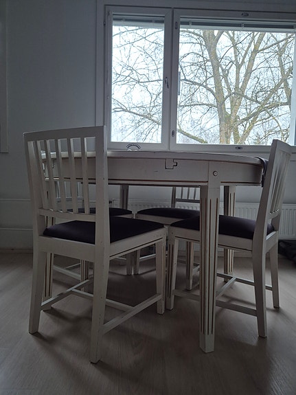 Ruokapöytä ja 4 tuolia.