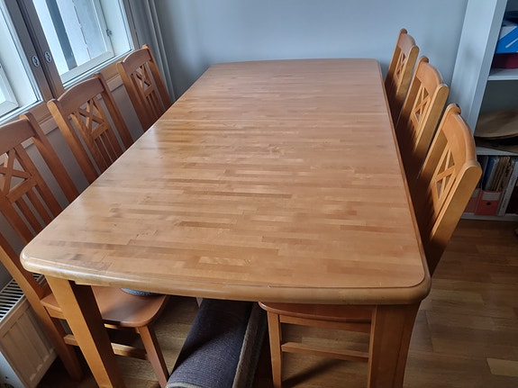 Pöytä ja 6 tuolia