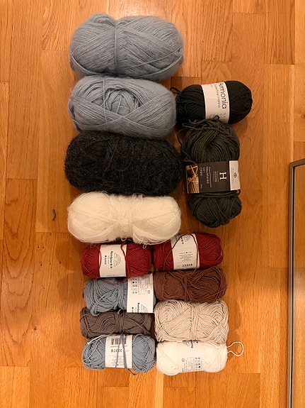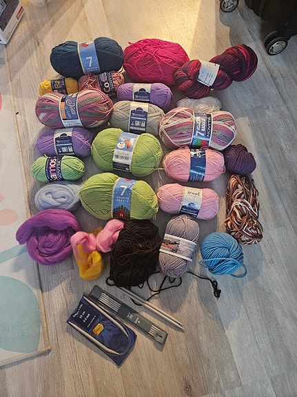 Sekalainen erä lankoja ja tarvikkeita