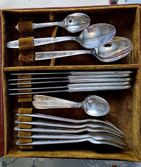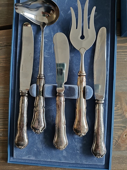 Jos hankit aterimia ja pöytähopeita käytettynä, muistathan että niitä kannattaa kiillottaa säännöllisesti. Netistä löydät runsaasti vinkkejä esimerkiksi hopean puhdistukseen. Toki vanhassa esineessä saa monen mielestä myös näkyä jonkin verran ajan patinaa. Myös oikea säilyttäminen auttaa pitämään vanhat hopeat kiiltävinä: pöytähopeat kannattaa säilyttää joko alkuperäisissä laatikoissa tai esimerkiksi puuvilla- tai minigrip-pusseissa, mieluiten valolta suojattuna.