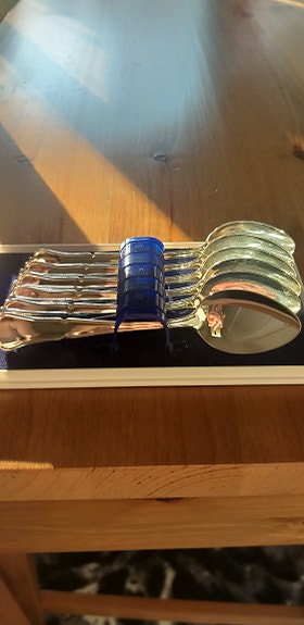 kullanväriset veitset, lusikat ja joku muu