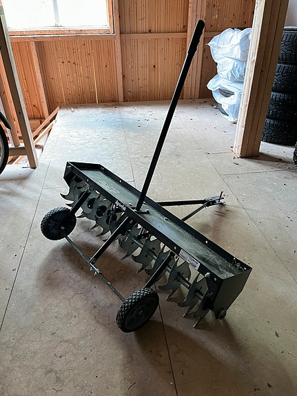 Myydään perässä vedettävä nurmikon ilmaaja