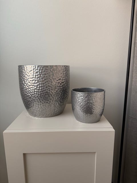 Bauhaus Boston hopeanväriset keraamiset kukkaruukut 2 kpl