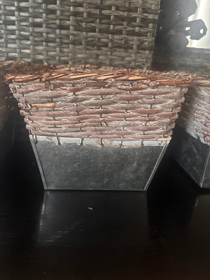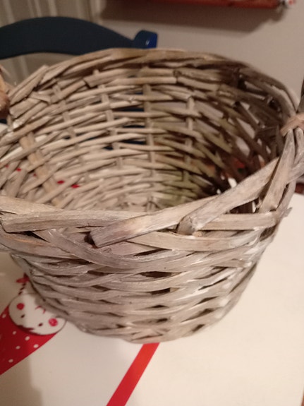 Punottu rottinkikori kahvoilla. Näitä 2kpl. 2€/kpl.