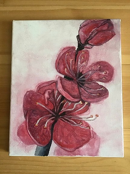 Siirry hakutuloksiinHerkkä KIRSIKANKUKKA-akvarellimaalaus, koko 22x27x2cm