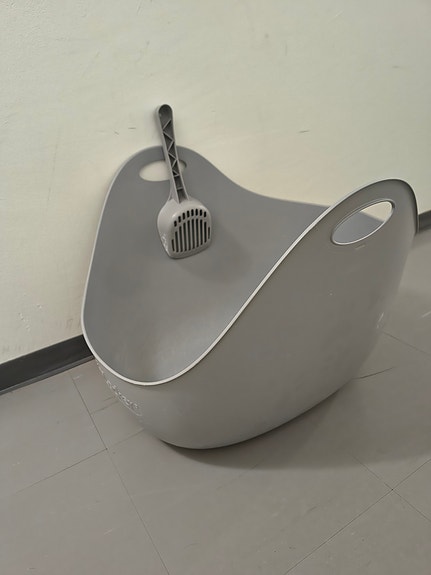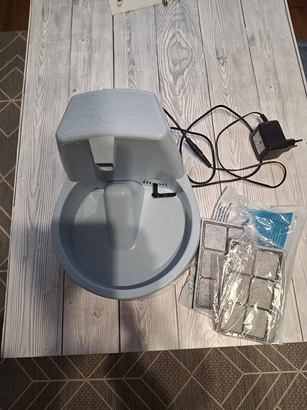 Kissanvessa suljettu muovinen valkoinen ja harmaa