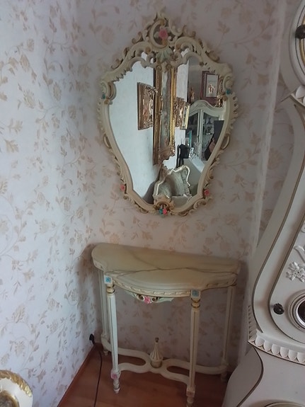 vanha antiikkinen konsolipöytä marmorikannella ja vanha peili