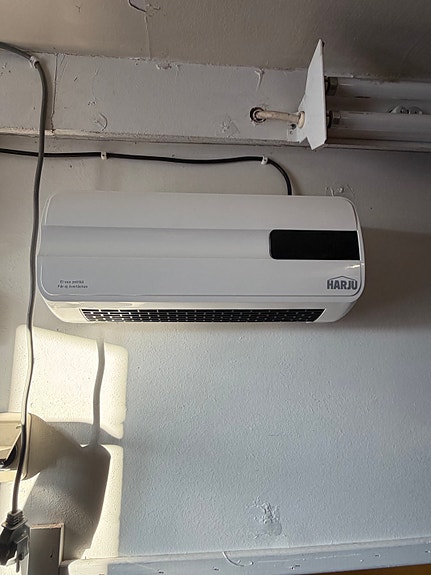 Harju seinälle asennettava lämminilmapuhallin kaukosäätimellä