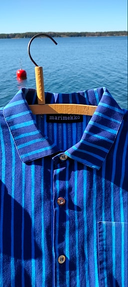 Upea Marimekko Jokapoika -paita – Klassinen sininen Piccolo-raita – Koko 41