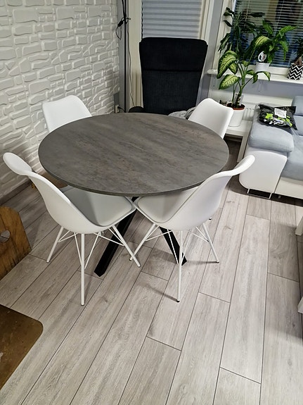 Ruokapöytä + 4 tuolia (hyvä kunto, moderni)