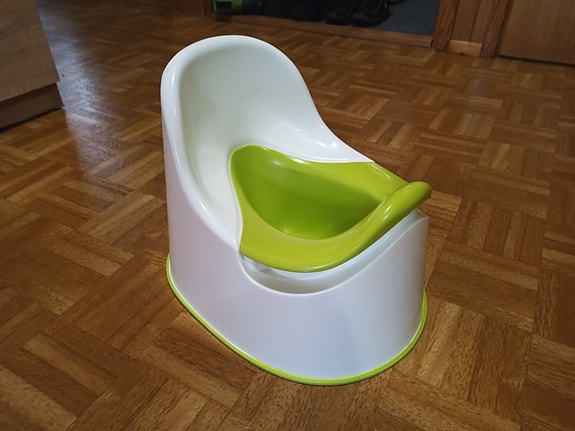 Lasten potta ja korokevalkoinen vihreillä yksityiskohdilla muovia