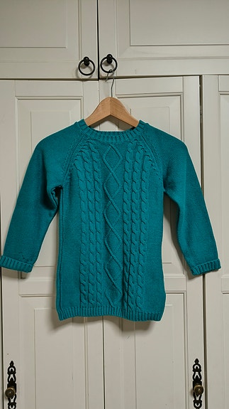 Palmikko neulepusero koko 128 turkoosi