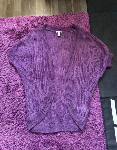 Neuletakki lila, lyhyet hihat, H&M, koko S