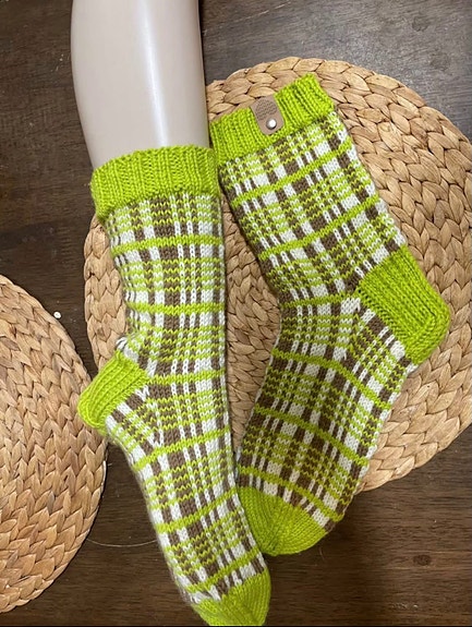 Lime/ruskeat ruutu villasukat 39-40