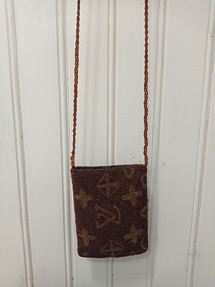 Helmikirjailtu pieni olkalaukku