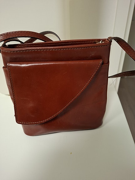 Konjakinruskea nahkalaukku