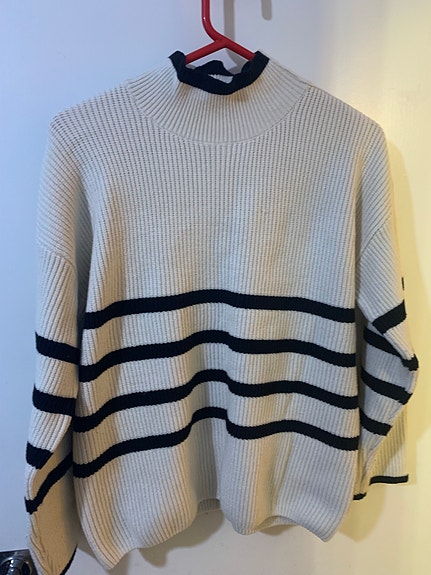 Sinsay Neulepusero Beige Mustilla Raitakuoseilla Naisten Koko L