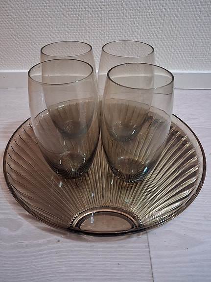 Vintage tarjoilulautanen ja lasit