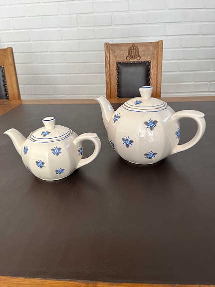 Posliininen teekannusetti sinisellä kukkakuviolla