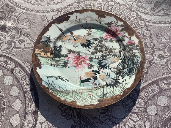 Japanilainen koristeellinen posliinilautanen käsinmaalattu