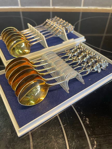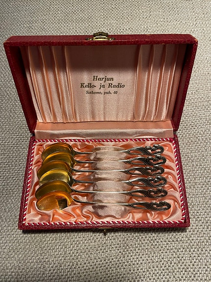 Jos hankit aterimia ja pöytähopeita käytettynä, muistathan että niitä kannattaa kiillottaa säännöllisesti. Netistä löydät runsaasti vinkkejä esimerkiksi hopean puhdistukseen. Toki vanhassa esineessä saa monen mielestä myös näkyä jonkin verran ajan patinaa. Myös oikea säilyttäminen auttaa pitämään vanhat hopeat kiiltävinä: pöytähopeat kannattaa säilyttää joko alkuperäisissä laatikoissa tai esimerkiksi puuvilla- tai minigrip-pusseissa, mieluiten valolta suojattuna.