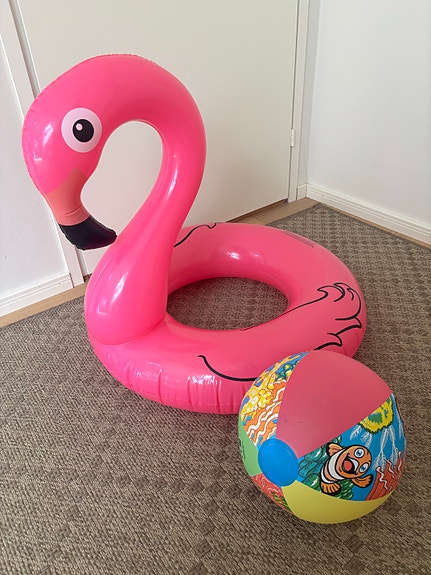 Flamingo-uimalelu ja rantapallo