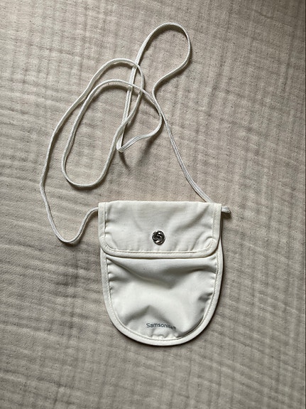 Myydään Samsonite kaulapussi, passipussi, valkoinen, koko 17x13,5cm, paino 37,6g