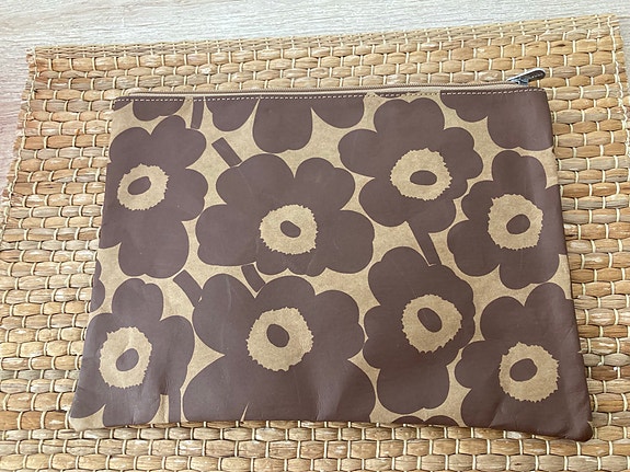 Marimekko pussukka ruskea kukkakuvio naiset