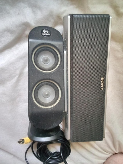 2 pientä kaiutinta sony ja logitech