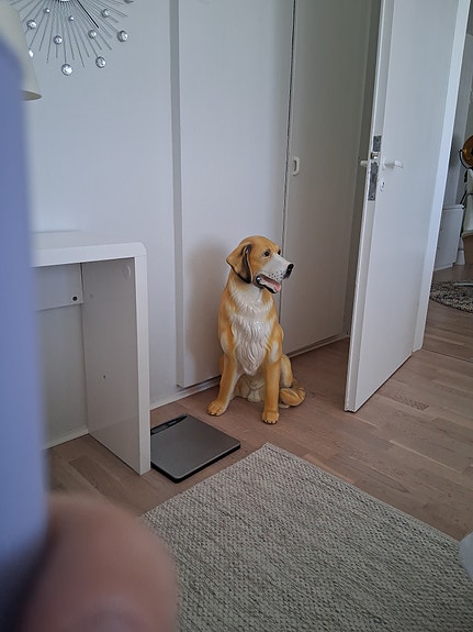 Koirapatsas istuva keraaminen keltaruskea 80cm.korkea.