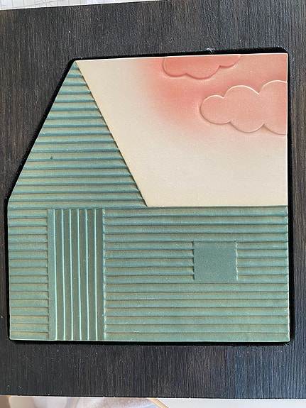 Talo- aiheinen keramiikkataulu Pentikiltä