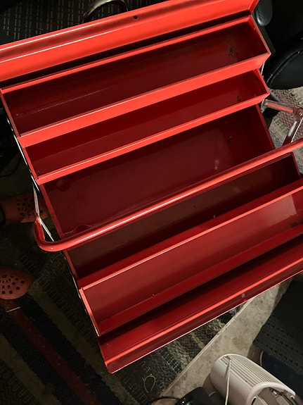 Punainen metallinen työkalupakki