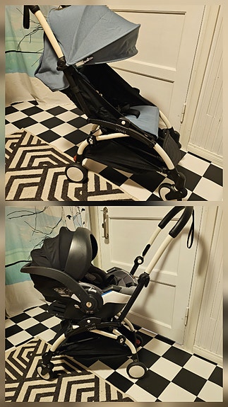 Stokke Yoyo babyzen ja adapterit turvaistuimelle.