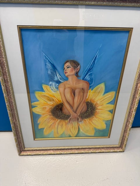 Taulu kehystetty keijukainen auringonkukassa / Manja Biela