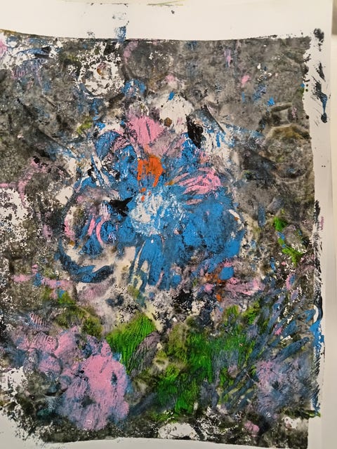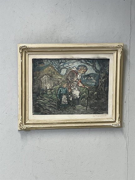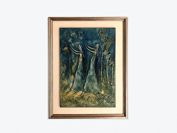 Taulu ”Kaksi kulkijaa” värietsaus, Jalmari Ruokokoski
