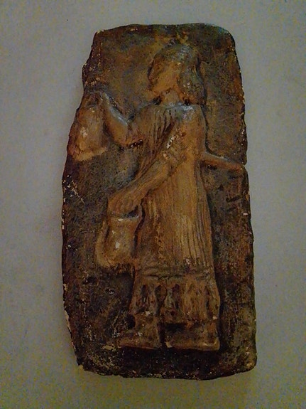 Antiikki savi taulu nainen maljojen kanssa