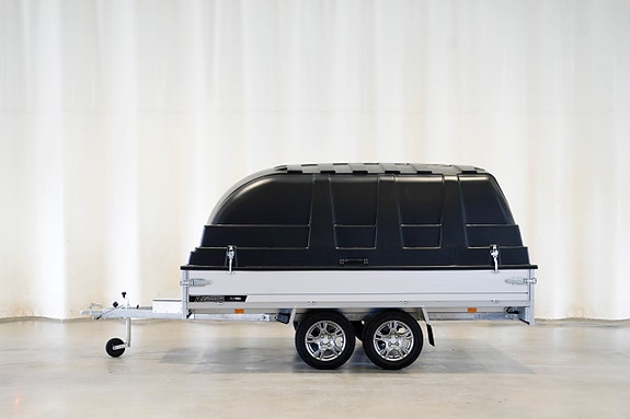 Peräkärry kuomulla. Harmaa. Pituus 275cm.