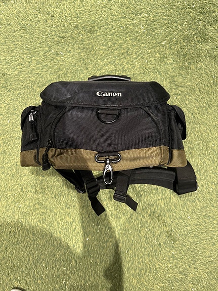 Canon kameralaukku musta olkahihnalla
