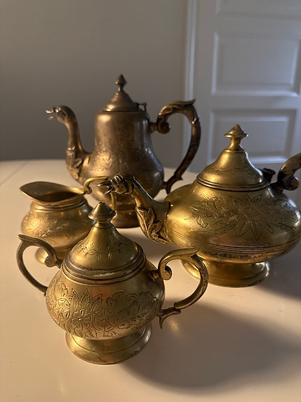 Kaunis antiikkinen hopeoitu teekannu- ja kahviastiasto (EPNS)