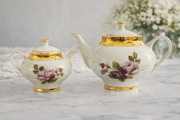 Upeat vintage-posliiniteekannut kultauksilla – erinomainen kunto