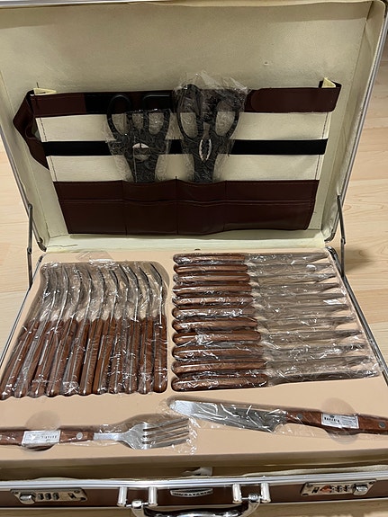 Bavaria aterin- ja veitsisetti salkussa puukahvoilla