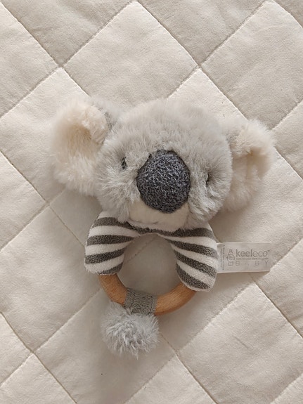 Koala-pehmoinen puinen vauvan helistin harmaa